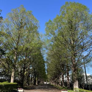 公園のメタセコイア並木🌿 新緑が綺麗で気持ちがいいです