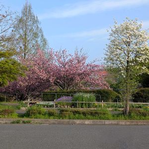 春色の冠岳園 ☆1 メタセコイアの広場 御衣黄と八重桜の並木 ソメイヨシノも僅かに残ってる 奥の中国式瓦の向こう側に花海棠 ☆2 ハナカイドウ 🏷️今日のお花 ☆3 花海棠の咲き乱れた姿 ☆4 花海棠の隣りで咲き始めたハナズオウ ☆5 花蘇芳 2025.4.13 冠岳園