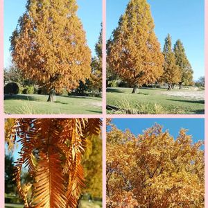 高~い木々🌲の紅葉🍁・:*+. 《スライドpic》 ①~③メタセコイア 1枚目・3枚目picの並んでるメタさんの真ん中辺りに立ち…見上げマシタ🤩キラキラ˚✧₊⁎ 2枚目・種子もついてたョ! ④、⑤ラクウショウ 5枚目・実が鈴なり~
