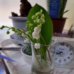 こんにちは🌤️可愛い鈴蘭(すずらん)🔔が、今年も一本だけですが✨✨花開きました。✌️やっと、4本に増えました🎶まだまだ花を見るまでなく、葉だけですがいつか花を見せてくれる事楽しみにしてます💓