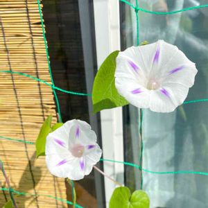 【桔梗咲きさんもおはよう】 昨日に続いて桔梗咲き朝顔さんが二つ 顔を見せてくれました。 一つは開ききって。一つは半分開いて。 5月からずっと楽しみにしていました。初めまして(*´▽`*) パッケージに「桔梗咲き」ってあったけどあまりそう見えませんが、咲いてくれたので良しとします(*^^*) もう一つ 西洋朝顔さんも お寝坊さんで半分も起きていませんが、今日も開いてくれそうです。 だけど 今から仕事なので帰ったら萎んでいそうです。 朝顔が開くのがこんなに嬉しいなんて(≧∀≦)