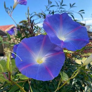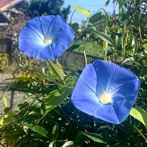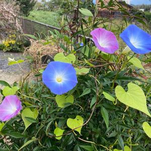 ブルーの西洋朝顔がやっと咲き始めました。 南天の木に絡ませている子です。 植木鉢の子は夏の終わりに咲かないままご臨終。 今年は暑すぎて朝顔が可哀想だった。 普通より1か月くらい遅い咲き始め。 11月いっぱいまで咲いてくれるかなぁ。