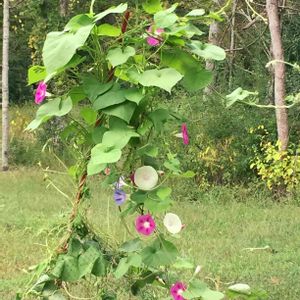 うっかりタネをこぼしてしまった大量の朝顔の種。秋になっても 咲き乱れてます✨