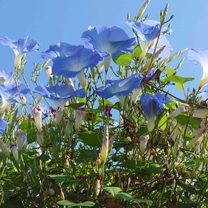 友人の家の朝顔が あまりに美しかったので 朝顔のブルーが青空に映える!