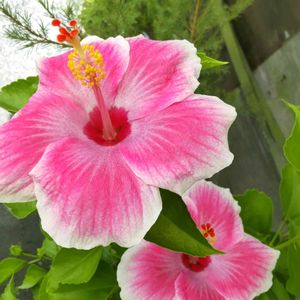 久しぶりに咲いたハイビスカス🌺 ⬅️ストロベリーアイス ➡️ミックスベリー 🌀対策で納屋に避難させてます。