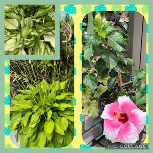 🏷️ 金曜日の蕾たち💕 優しい色の ハイビスカス🌺ストロベリーアイス と 食べちゃいたいようなネーミングの🌺で 参加します🤭 ギボウシの花も 咲き揃ってきました🤗 昨年は 左上↖️のような こんなにハッキリとした斑入りだったのに 今年は ライムグリーンのような葉っぱ🌱になってしまいました😭 何が悪かったかな❓😣