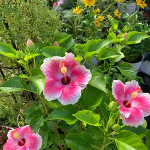 ハイビスカス🌺 3つ咲きました😊 後ろのルドベキア🌼 ひと月以上ずっと咲いてます 3年目でも元気でありがたいです٩( ᐛ )و