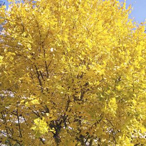 一日中、よく晴れました。 大きな銀杏の木。 ようやくすっかり黄葉したかと思ったけど 近づいて見たらまだ 日陰になる所の葉は緑でした