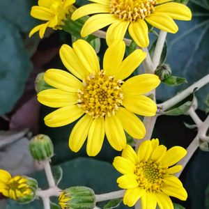 おはようございます☀️ 今日のお花💐 🌿ユリオプスデージー🌿 キク科ユリオプス属 常緑低木 2024.10.24 撮影📸 こちらは八重咲きです。 草花と思ってましたら樹木だったんですね😳