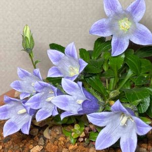 我が家のカンパニュラ 3 campanula chamissonis 千島桔梗 暖地のためか4月後半で開花する 艶やかな葉と淡紫色の花が美しい