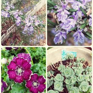 ⬆️今年は『ローズマリー』のお花が満開です❣️ ↙️ネモフィラ『ペニーブラック』小ぶりで可愛いお花です❣️↘️『ミセバヤ』毎年新芽が出てくれます❣️