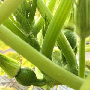 [ミニズッキーニ /ベランダ水耕栽培] ー 新しい水耕装置のズッキーニが順調です 去年は、雌花まで長かったけれど、今年は雄花が咲く前に姿を見せてくれました 🥰