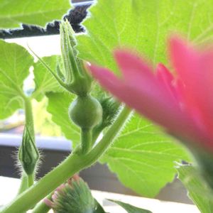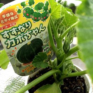 [ミディかぼちゃ /ベランダ水耕栽培] 鈴なりかぼちゃん 早くも雌花の兆し (๑° °๑) これは本当は摘果してあげた方がいいのかな??お母さんになるには株がまだ小さ過ぎるような…💧 ???