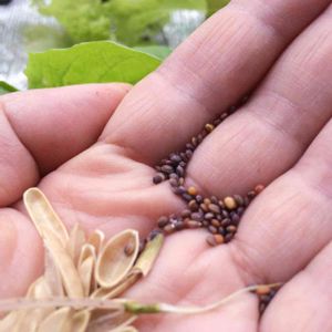 [ルッコラ /ベランダ水耕栽培] 乾いているさやを割ってみました 種が出来てます (⁎⁍̴̛ᴗ⁍̴̛⁎)