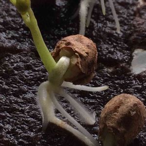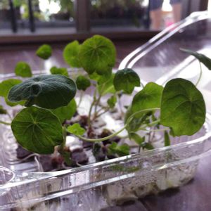 [ナスタチューム /リビング 発芽準備中] ナスタチューム発芽しました (⁎⁍̴̛ᴗ⁍̴̛⁎) 風の谷のナウシカに こんな子いたようないなかったような