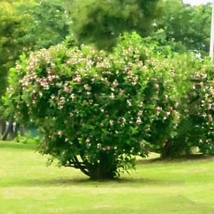 おはようございます(*^^*) 今日も暑いですね💦 ハートツリーの小さいお花が今年も咲きました🌼