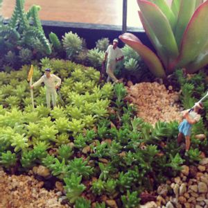 大好きなセダムちゃんで、ジオラマ風箱庭作りました〜🎵 ちまちま度が半端なく大変でしたが、完成して 大満足〜💕 多肉いじりの次にはまってる ⛳️が、題材✨