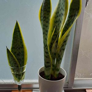 2021.9.17 雨☔ 【サンスベリア】 台風が近付いているので、今日は、朝からずっと☔でした。 先日買ったサンスベリア。 倒れて来たので、引っ張ったらスッと抜けてしまったぁ~😁 わからないけど‥水栽培に。育つかな❓️