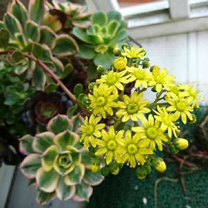 おはようございます🙃 昨日の強風被害が無いか朝からタニパト😤💨 徒長かと思っていたらなんと花芽っぽい… (赤丸部分です) アエオニウムのチョコチップ アエオニウムは花が咲いたらその株は枯れてしまうと聞いた事が有るのですが… どうしよう… お花見たい… でも枯れて欲しくない… うぅぅぅ😑