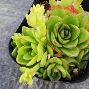 薄紅蓮華ですがやけに明るく 目立つ子株がニョキリ。 何株か植えたわけではなくて親は一緒だから条件は同一のはず。 色素抜けのライムカラーだと 紅もピンクあたりに変わるから より可愛らしさが増して 嬉しいんですけどね。 追って観察して行きたいと 思います。