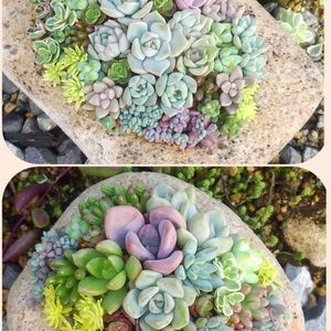 おはようございます🎶 今日も雨☔ 昨日、おみやげに貰った宮崎産の🌴軽石鉢にチマチマ寄せました✌ ポイポイ箱の小さい子ゃ庭のセダムをカット✂️ この頃涼しいので秋と勘違いして😅寄せ植えしたけど💦暑い日が戻ってきたら☀大丈夫かな~心配やわ😓