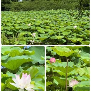 ハス 篠山城蓮(篠山紅蓮) 園芸品種と比べて花弁が少なく、大ぶりの花をつけることが特徴の固有種。ミシシッピアカミミガメの食害で一時消滅したものの、復活プロジェクトが成功し、今年もずいぶん広がりました🎵 当地では丸3日間の大雨がようやく収まりました。GS本日の花なので城の南堀まで出かけてみた ビューティフルサンデー🏷️