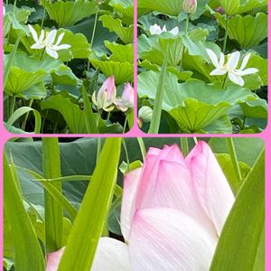 ハス 開花はおおよそ4日間といわれるので、それぞれどの状態かなぁ?と思いながら、10時頃に篠山城跡の堀端を巡る♬ 蕾が膨らんで開きかけている状態は1日目なんだな👀チューリップみたいね♬ 蓮華の形に開いて色が濃いのは2日目と見た🩷 3日目ともなると、堀端からでも花芯がハッキリと見えるようになっている(๑´∀`๑) 4日目にしっかりと開いた後は、午後になってもそのままで閉じない⭕ 花弁は今にも下から1枚1枚と落ちそうなまでに✨花床に包まれた雌しべとその下部の雄しべが目立っている🟡 花托も咲いていた時は黄色だったのが、緑色に変わってくるのね🟢 篠山城跡の南堀の篠山城蓮🩷 茎を切ってしまうアカミミガメを、地元の小学生たちも頑張って駆除した成果だヽ(^o^)丿
