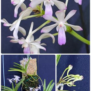 バンダ ルースネアリーの比較😊 同時picが何とか間に合いました。 ⬆️は選抜個体の’スウィートラブ’ ピンク色🩷で、香りが強いタイプ。 メリクロン株です。 ⬇️は個体名無し。香りはあります。 ほんのり紫色💜です。 ルースネアリーは風蘭とリンコスティリス セレスティスの交配種で登録は1970年。 以前はネオスティリス ルースネアリーでしたが、風蘭がネオフィネチア ファルカータからバンダ ファルカータに分類変更された為、品種名がバンダ ルースネアリー(属名はバンダコスティリス ルースネアリー)に名称変更になりました。 どうしても旧名の方が分かりやすかった😅 (風蘭が入っているとコンパクトで比較的寒さに強いので) 遺伝子的に解析して、変更したのは評価します。 でも当面の間は2段書きで旧名も載せて欲しいです。