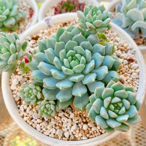 3月にsocioさんのインスタ販売でお迎え 夏に紅葉が消え葉が広がって ちょっと残念な姿になったけど ここのところ 大きくなってまた違う可愛いさ ブルーの葉で爪先が透けてうっすらピンク 今の姿も好き〜💕