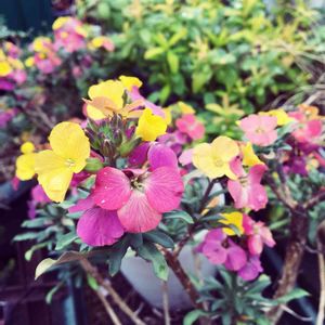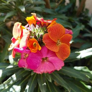 💛💛💛💛💛 1つの花にいろんな色が‼️ 賑やかなお花だ〜〜💕 ( ◠‿◠ ) ”エリシマム スプリングパーティ” まだ色が変わっていくのかなあ^_^ 💛💛💛💛💛