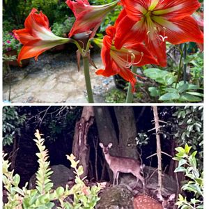 初めてのアマリリス ❁¨̮ 蕾が全部咲きました😍 : 鹿の散歩🦌