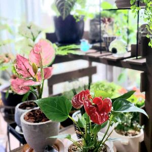 アンスリウム 友人からプレゼント してもらっちゃった😊 どうもありがとう‼️ ミニミニアンスリウム❤️ とっても可愛くて 観葉コーナーで 一番のアクセントに なってます🎵
