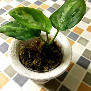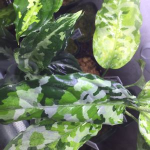 アグラオネマピクタムトリカラーアンダマン🍃🍃 迷彩カラーに夢中。 復活してきたところ。 現在は猛勉強して良いとこ取りした土の配合と、肥料などにより、葉から水が滴る程良い状態になりました。 葉水しないでも自ら水を吸い上げ出てきています❣️