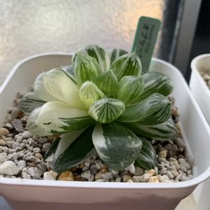 おはようございます。 今日のハオルチアは「マリン錦🍀」です。 こちらは購入した株ですが、ここまで綺麗に大きく育てるまで、どのくらい期間が掛かるのだろうといつも思う。 5年前にメンテナンスした別品種株がちっとも成長しません。もちろん私の腕が悪いのは承知しているのですが、環境や土、肥料など色々ともっともっと勉強しないとね。😅 今日も一日頑張ろう!