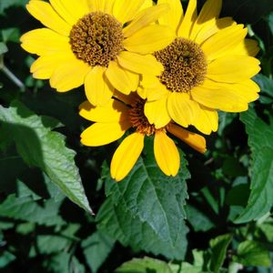 大きな株で、例年いっぱい花を咲かせる宿根ひまわり。今年は今頃になって、元気な花を咲かせ始めました。 あまりの暑さで、7月から蕾や葉が茂っても、すぐ枯れ気味になって、うまく花を咲かせられなかった宿根ひまわり。でも、少し涼しくなり、花が咲かせられるようになって良かったです。