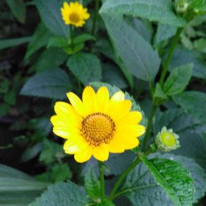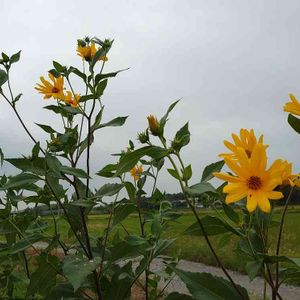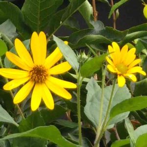 ヘリアンサスロドンゴールド。 和名ヤナギバヒマワリ。 夏から秋にかけて鮮やかな黄色の花を沢山咲かせる。