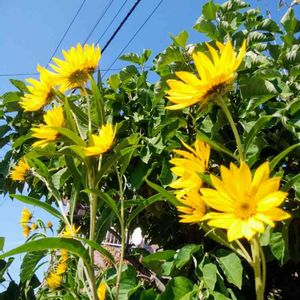 秋の空と夏の花🌻 宿根ヒマワリ、今年も咲いてます🎵 もう少し、低く咲いてくれると いいのに😊