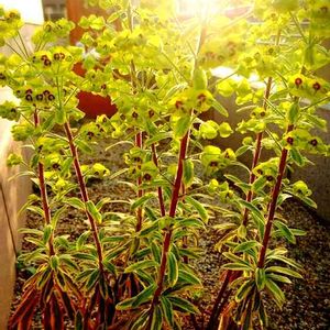 おはようございます☀ 皆さんはもうGW入ってる人いるのかな?? 私はまだまだ😢今日も頑張る!!!! あれから、ユーフォルビアに花が咲きました🌼 夕日もあたり、すごくきれいだったのでパチリ!!