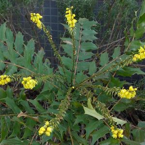 ヒイラギつながりで、ヒイラギナンテンです❣️ よく見るホソバヒイラギナンテンとは迫力が違いました😌 よく前を通る施設の庭で咲いていました‼️ でも今まで全然気が付きませんでした😰 フェンスの隙間からパチリ📸