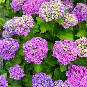 施設の庭にて‥ アジサイ色づき始めました🩷 装飾花も色々👀 八重を越えて もはや薔薇咲きのよう