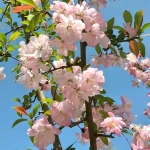 3月18日に新芽を投稿したカリンの木。 今日、上の方にピンクの可愛い花が咲いているのを見つけました❗️ これが今まで気付かなかったカリンの花ですね✨ 可愛い💞 みんなに教えてあげました☺️