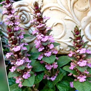 ピンク💗アジュガ 今日はお庭日和になりそうです😄🎶 オックスフォードさんの前のピンクアジュガさんが咲き並びました😆💕 このスペースはアジュガさんの井戸端会議場所🤗 ピンクアジュガ💗さんが1番乗り🌼次にブルーアジュガ💙ホワイトアジュガ☆と咲きだします😄🎶