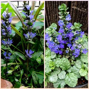 🌼アジュガ🌼 こんなアジュガさんもいまっせ〜😆🎶 💜チョコレートチップ 💜グレイレディー チョコチップさんはリーフが銅葉でグレイレディーさんはシルバーリーフ🌱 どちらもリーフが素敵✴️