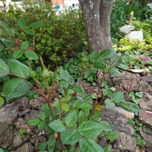 ミニバラのつぼみ。 ポンっとはじけそうにふっくらし始めました。