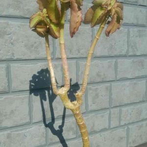 おはようございます😊はじめまして😊私が育てている弁慶草?です。この子…葉から芽を出し…そこから頑張ってるのですが、それがなかなか大きくならない😅外に出したり、中に入れたり…どうしたら良いのか教えてー皆さん🙏