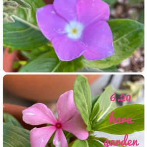 日々草 こぼれ種で咲いた 去年 こんな子いたなー🫶 すでに この鉢は 満杯です もう少ししたら 植え替えなくては