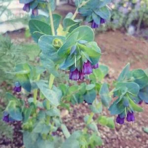 セリンセ・マヨール・プルプレッセンス~☺ 去年、気に入って購入したものから種がこぼれて今年出てきた感じ🙆 もっと大きくなって華やかに見せてほしいですねえ😃✴