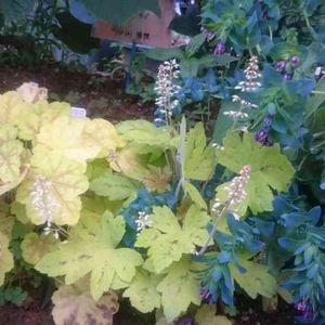 右からセリンセ マヨール プルプレッセンス、ヒューケラ サンライズフォール、ヒューケラ テキーラサンライズ~☺ 昨日からの雨上がりで植物が生き生きしてますね✨✨✨ ヒョロヒョロとお花が伸びてきてますねー(*´∀`)♪