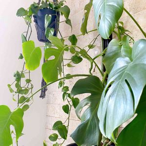 【シッサス アマゾニカ & ウツボカズラ】 『シッサス アマゾニカ』さんが伸びに伸びて4mに! ダウンライトレールにフックを付けてハンギングをする事を決意(°∀°)ニパッ 『ウツボカヅラ』チャンも狭いところにぶら下がっていたので、移動するぞっ!! 昨日A○azonで調べたら、フック1個142円安い❕😆 迷わず2個ポチッ!! 本日到着🙌ワーイ!! (A○azonやっぱり凄い‼️) 早速取り付けて見ました~✨ 喜んでるように見えるのは私だけ??🤭 (ちなみに『アマゾニカ』さんが入ってるハンギングネットはセ○アで税込110円です😃) ※回し者ではないので、今日はお店名○で隠してみたヨ🤣