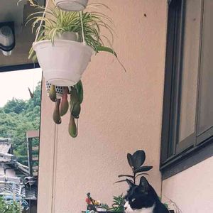 今日は☁️で涼しいです💙 軒下のプチジャングル🌴 夏だけの景色🥰